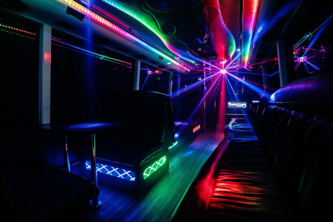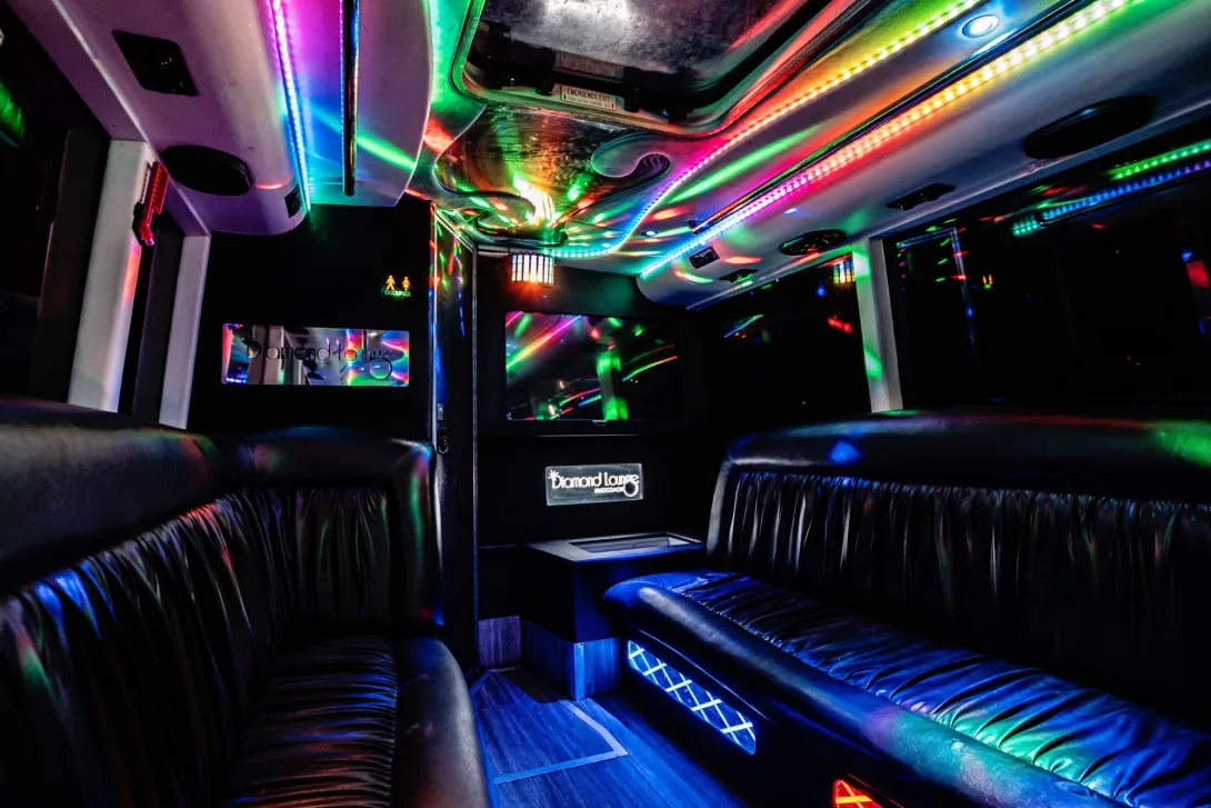 Diamond Lounge 30 seater- This Luxury 30 seater Limousine is ready to chauffeur you and your guests around in the finest form of transport available in Perth, our staff will ensure you and your guests will be having a time to remember with the red-carpet rolled out on every entry and exit all while you are enjoying the Luxury our coach has to offer.