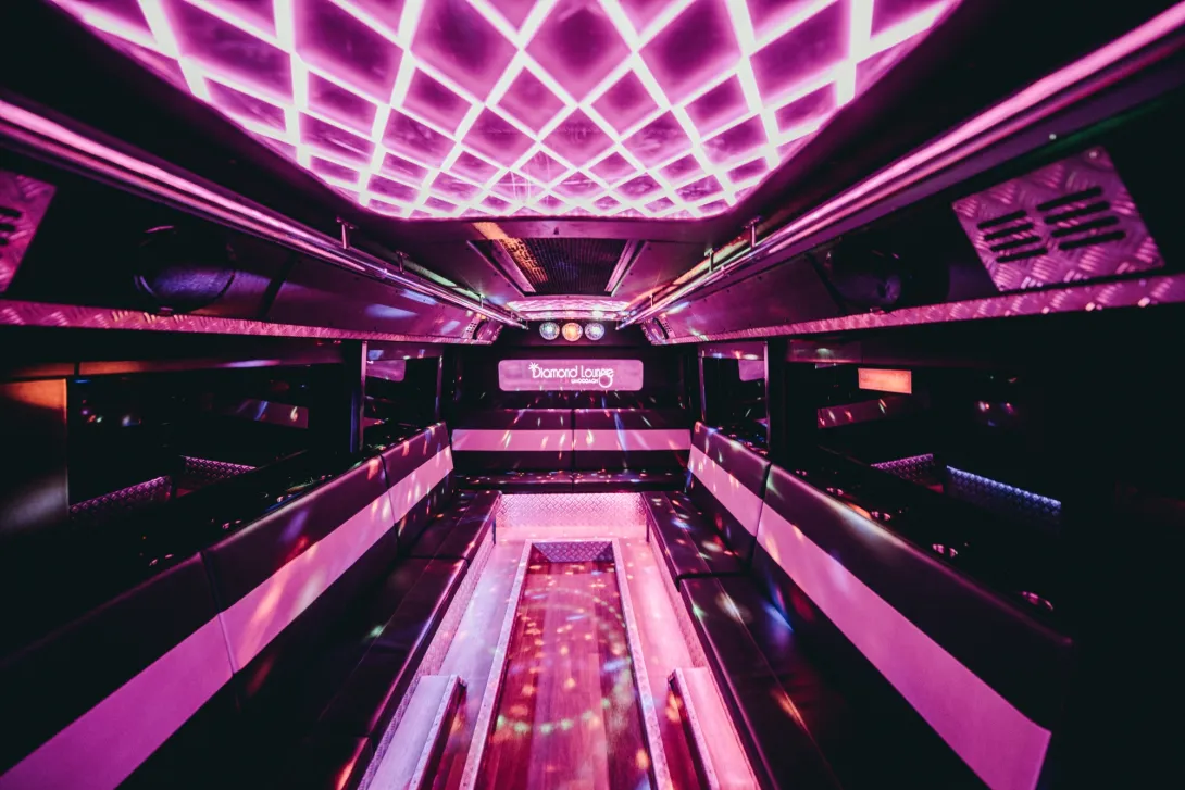 State of the art Audio and Visual, Internet connectivity and more Both our Diamond Lounges have 5 powerful subwoofers built under the floor and 150000watts of supreme surround sound. With professional lighting, smoke and ambiance effects, this option will encompass our state of the art sound system.